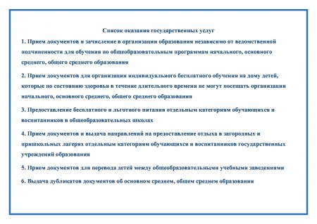 Порядок оказания государственной услуги "Выдача дубликатов документов об основном среднем, общем среднем образовании"