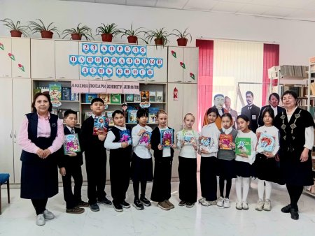 Библиотекарь школы Баянбаева Ж.О. с учащимися 8 "Б" класса посетили Центральную библиотеку