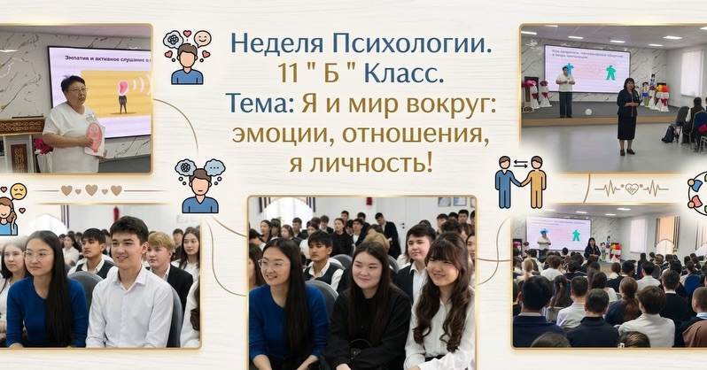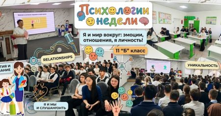 Психология апталығы аясында 2026 жылдың 13-17 сәуірі аралығында мектепте «Эмоционалды калейдоскоп» және «Менің бүгінгі көңіл-күйім» тақырыптарында сабақтар өткізілді. Оқушылар өздерінің ішкі күйлерін анықтау және эмоцияларын басқаруды үйрену үшін қызықты және тартымды тренингтерге қатысты. Оқушылардың тренингтерге қалай қатысқаны және бастан кешірген қарқынды эмоцияларына қарап, олар тренингтерді ұнатты.