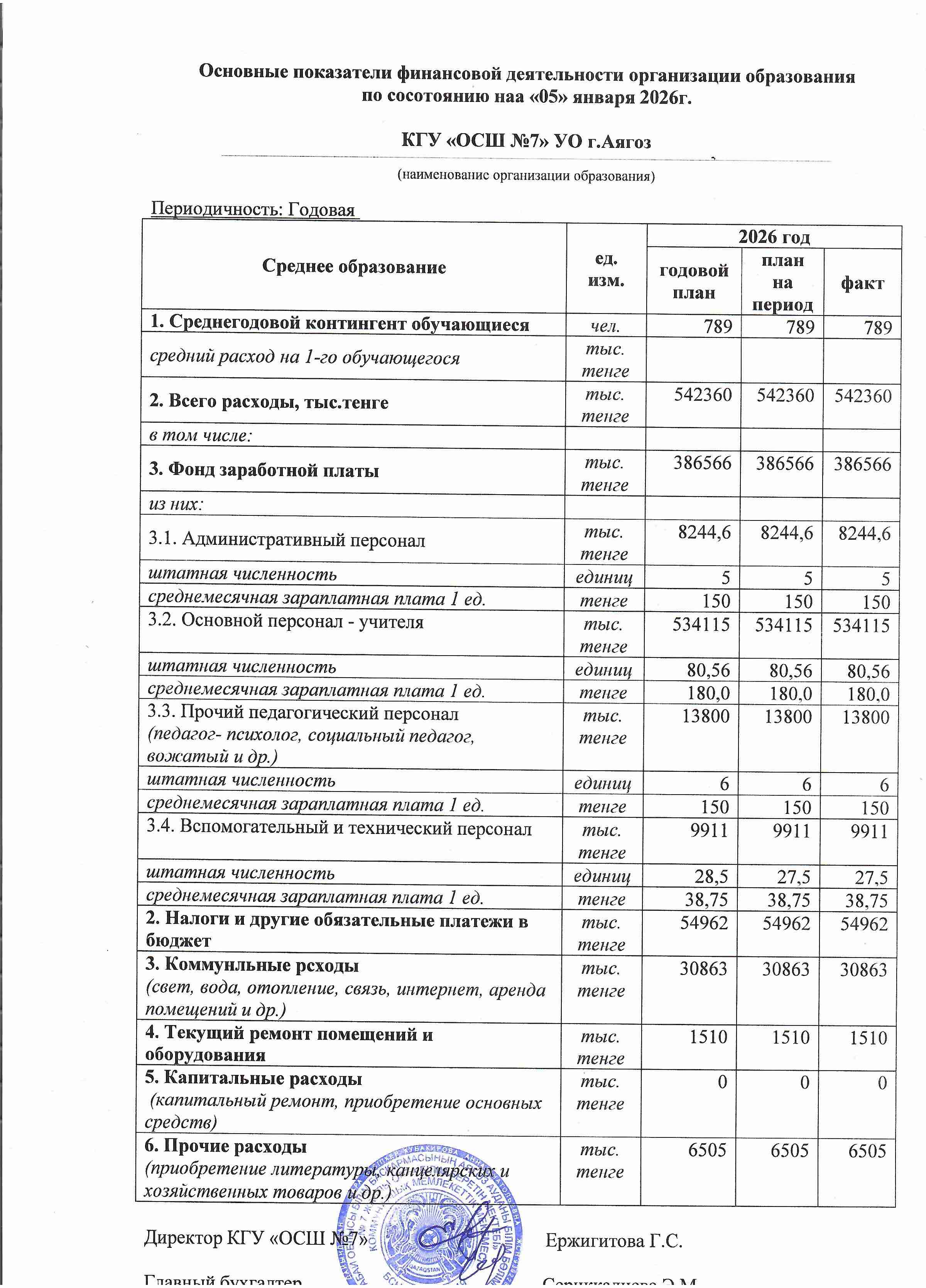 » Основные показатели финансовой деятельности организации образования по состоянию на январь 2026г.