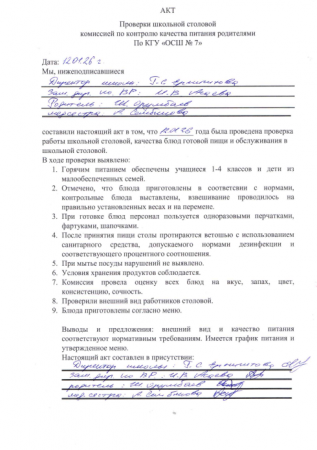 Акт проверки школьной столовой 12.01.2026