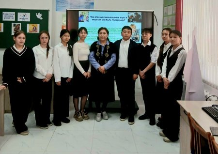 Библиотекарь школы Баянбаева Ж.О. с учащимися 8 "Б" класса посетили Центральную библиотеку